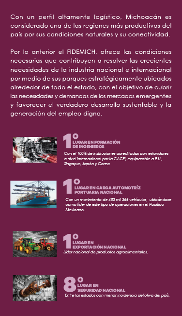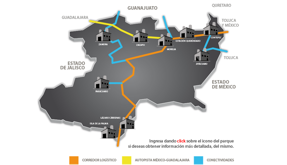 Su ubicación estratégica enlaza al comercio asiático con el mercado del NAFTA a través del Puerto de Lázaro Cárdenas por la Red carretera, y Ferroviaria de KCSM, logrando así una ventaja logística inigualable.